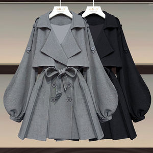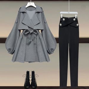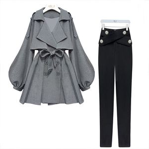 大码女装秋季套装女2025新款显瘦韩版风衣外套修身收腰长裤两件套