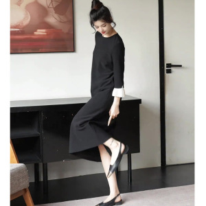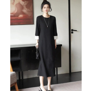 3555现货QEIIWMVIP/柒院秋季高端欧货赫本风宽松显瘦拼接百搭连衣