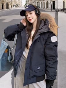 欧美飞行夹克情侣工装羽绒服女2025冬季新款大毛领极寒加厚派克服