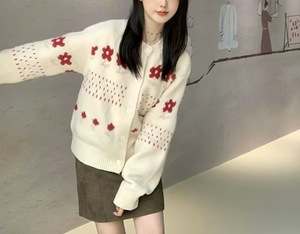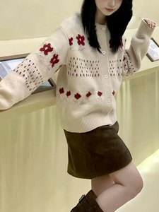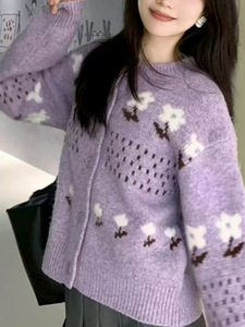 韩系氛围感提花百搭甜美圆领针织开衫2025年显瘦秋冬新款毛衣外套