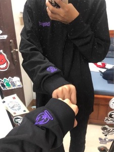 小火苗卫衣男圆领春秋打底衫美式高街刺绣设计感重磅纯棉长袖T恤