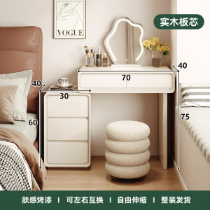 实木梳妆台小型现代卧室简约60cm床头柜一体小户型主卧斗柜化妆桌