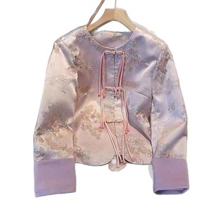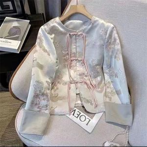 仙鹤梅花中式女春装时尚上衣圆领刺绣中国风盘扣提花外套复古宽松