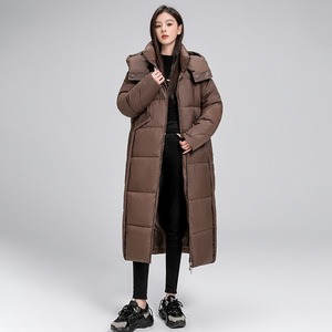 外贸新款2025年韩版加长过膝棉服女装气质连帽棉大衣宽松棉袄外套