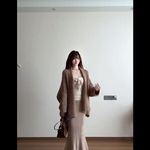 今年流行的慵懒风穿搭一整套早秋新款针织开衫吊带半身裙三件套潮