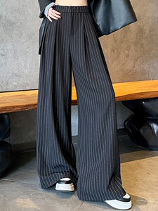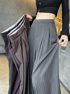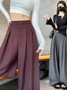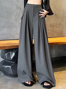 感灰色条纹西装裤女秋季2025新款高腰显瘦直筒垂感拖地阔腿裤百搭