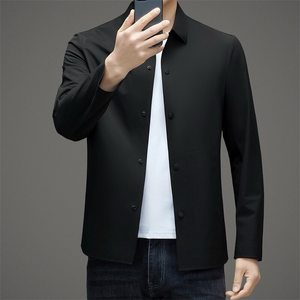 2025意大利高档夹克男春秋款中青年翻领纽扣无痕纯色休闲商务外套