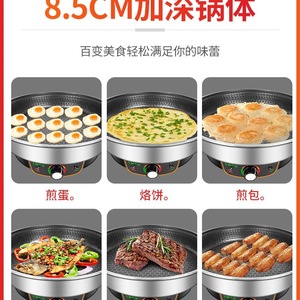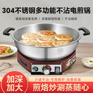不锈钢电饼铛加深加大多功能电煎锅家用平底烙饼锅蜂窝不粘锅煎烤