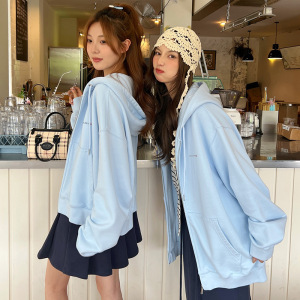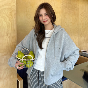 430克毛圈棉宽松连帽开衫卫衣女装2025秋冬拉链外套短款休闲上衣