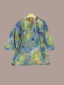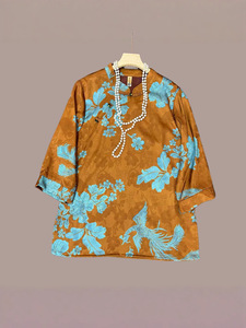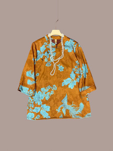 2025新款气质衬衫秋季新品新中式国风斜襟香云纱提花中长款上衣