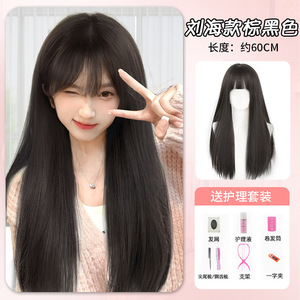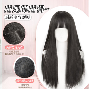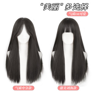 水舞沙假发女黑长直假发少萝Lolita仿真发加长直发8cm整顶全头套