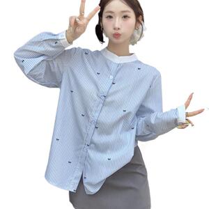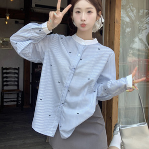 蓝色条纹衬衫外套上衣长袖2025超好看宽松慵懒风休闲设计感