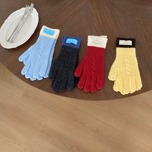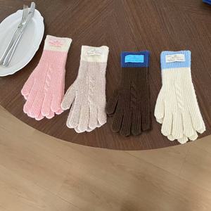2025新款时髦小物露指可触屏五指毛线手套女韩版秋冬保暖针织防寒