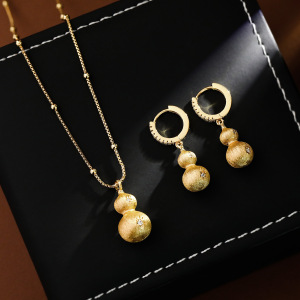 沙金古法点钻拉丝葫芦项链耳环套装新年时尚平安福禄招财毛衣链