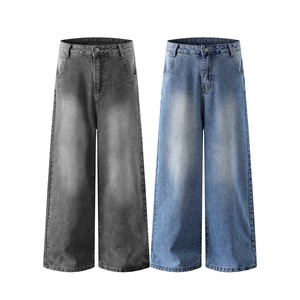 ATBORDER美式复古潮牌水洗做旧磨白牛仔长裤宽松直筒牛仔裤N1608