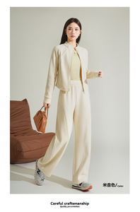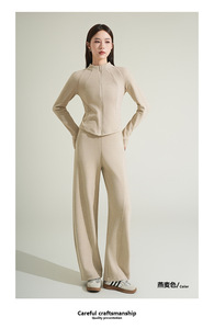 法式简约风三酸混纺(天丝/羊毛/蚕丝)修身坑条针织套装气质套装