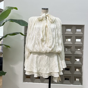 亚马逊慵懒感ins拍照2025韩版显瘦小个子褶皱宽松长袖连衣裙系带
