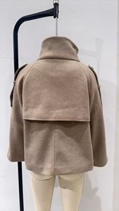 欧美跨境2025秋季新品立领排扣短款呢子外套时尚通勤纯色短款风衣