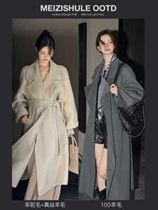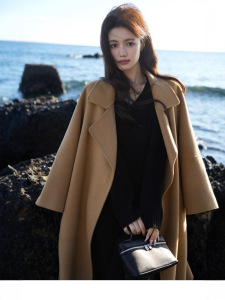 2025冬季新款感加长时尚休闲款气质红色羊毛双面呢加长款外套女装
