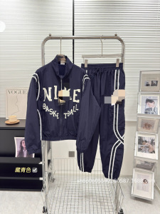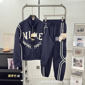 25年春秋季新款小勾梭织复古拉链立领休闲宽松串标织带拼接套装