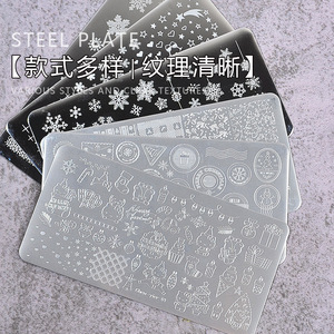 美甲印花钢板爆款雪花圣诞 NailSteelPlate转印指甲模板工具批发