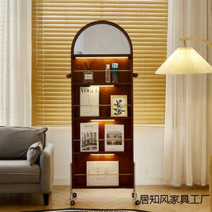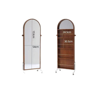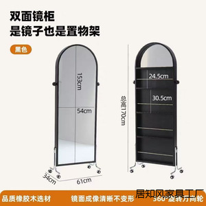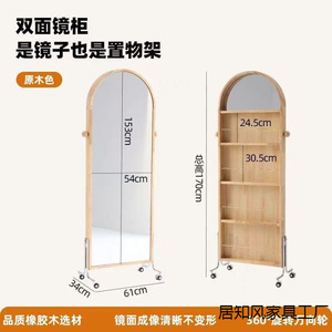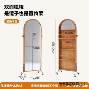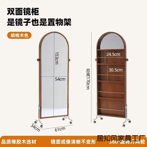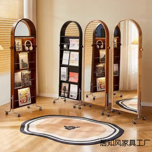 中古实木可移动全身镜家用置物架杂志架复古落地旋转穿衣镜全身镜