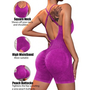 跨境砂洗吊带连体瑜伽服美背高强度舞蹈健身裸感磨砂运动连体衣
