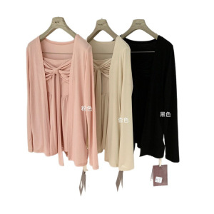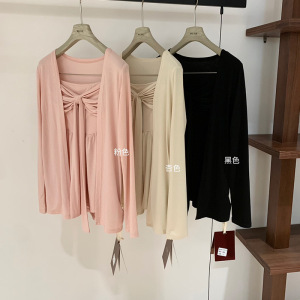 WGWE7218蝴蝶结背心带胸垫开衫外套两件套装