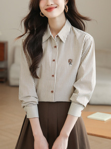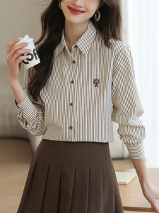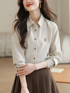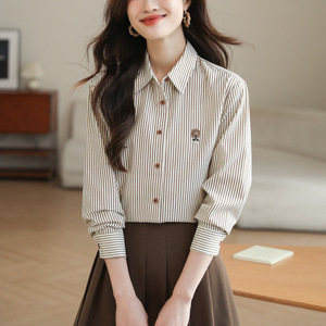 哥家商场同款女装2025秋季韩版学院风刺绣内搭上衣休闲百搭衬衣