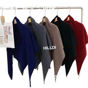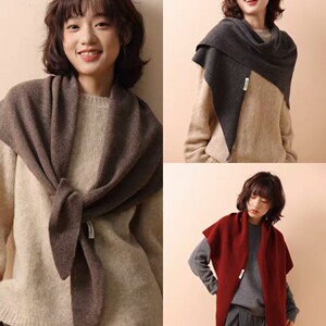 澳洲100%纯羊毛暗花三角披肩秋冬女保暖百搭高级感镂空外搭两用围