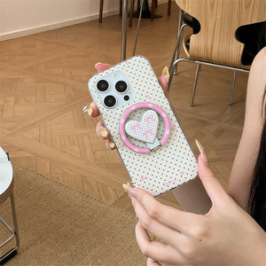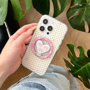 磁吸-白底黑波点粉蝴蝶结 壳+粉边蝴蝶结爱心360旋转支架