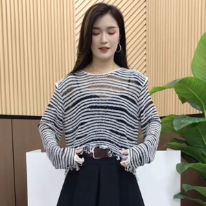 欧货不规则流苏长袖针织衫女2025秋季新款宽松显瘦设计感小众上衣