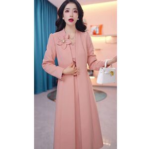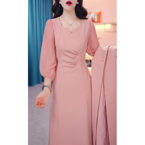 2025年秋季穿搭新款时尚两件套连衣裙遮肚子显瘦洋气精纺套装