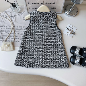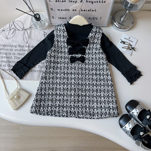 女童背心连衣裙2025春秋新款无袖小香风蝴蝶结连衣裙跨境代发