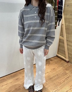 已出货 韩国chic秋季新款polo领松弛感条纹慵懒宽松针织毛衫
