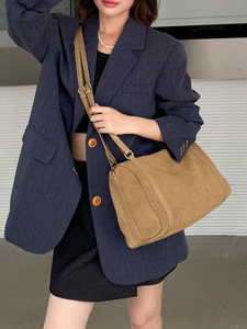 高级感托特包大容量女2025新款小众磨砂麂皮波士顿包包斜挎枕头包