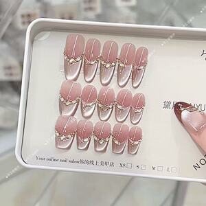 黛月达 纯手工穿戴甲秋冬新款D090余温法式气质猫眼款美甲贴片