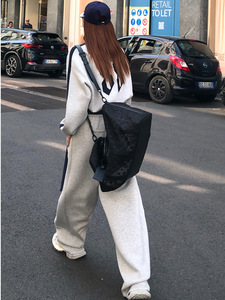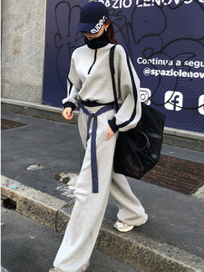2025超火穿搭一整套装女秋季高级感撞色卫衣阔腿裤休闲运动两件套