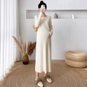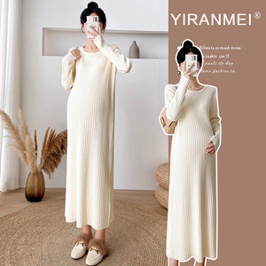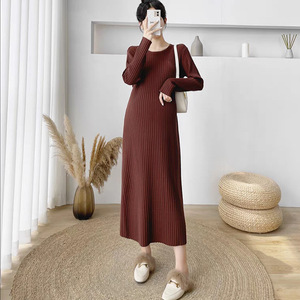秋冬加长款宽松百搭打底内搭圆领针织连衣裙毛衣裙