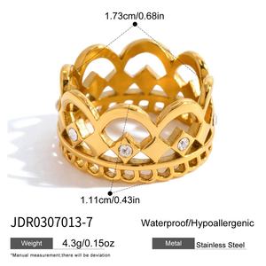 静俏经典风18K 金不锈钢锆石蕾丝皇冠镂空戒指小众高级感跨境饰品