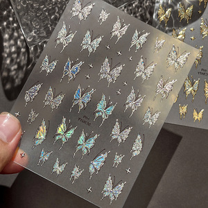 YITU蚁图烫金银镭射金属蝴蝶美甲贴纸高级复古百搭装饰贴纸YT6829