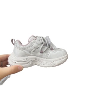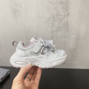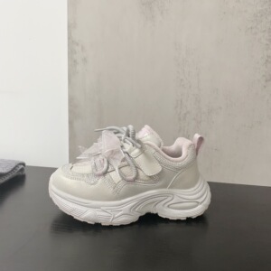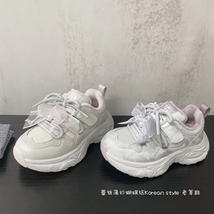 蕾丝薄纱蝴蝶结鞋面水钻装饰公主风拼接老爹鞋2025年冬款女童跑鞋