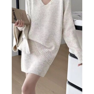 亚马逊速卖通eBay独立站毛衣套装裙女秋冬慵懒风针织衫短裙两件套