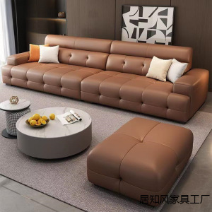 劳伦斯沙发猫爪皮简约现代大小户型客厅意式轻奢直排组合真皮沙发