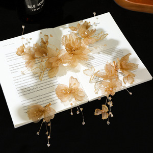 赫拉新款中式酒红色花朵水晶不对称边夹发饰旗袍礼服跟妆新娘头饰