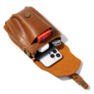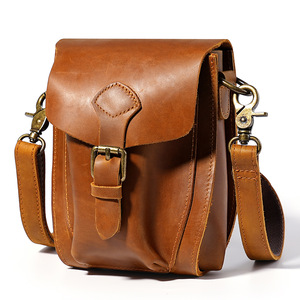 疯马皮原创个性男士小方包牛皮斜挎包穿皮带腰包腰挂手机包真皮