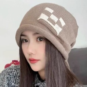 秋冬针织帽子套头帽子女毛线帽方块堆堆帽保暖包头帽冷帽月子帽