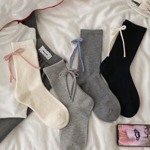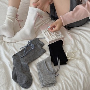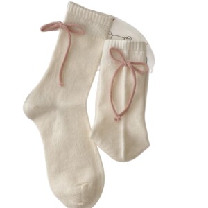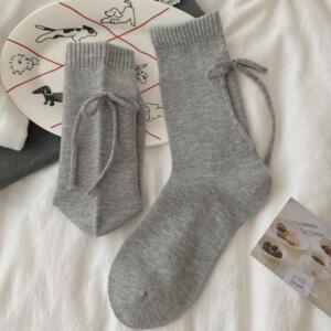 羊毛袜子后跟立体蝴蝶结饰品袜保暖中筒袜ins韩系无骨纯色女