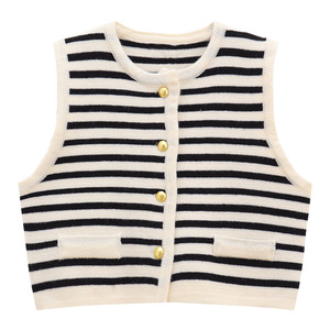小香风黑白条纹无袖针织马甲女秋季2025新款慵懒宽松短款背心马夹