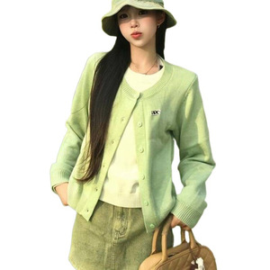 美式覆古假两件针织开衫女早秋新款藏青色长袖宽松慵懒风v领上衣